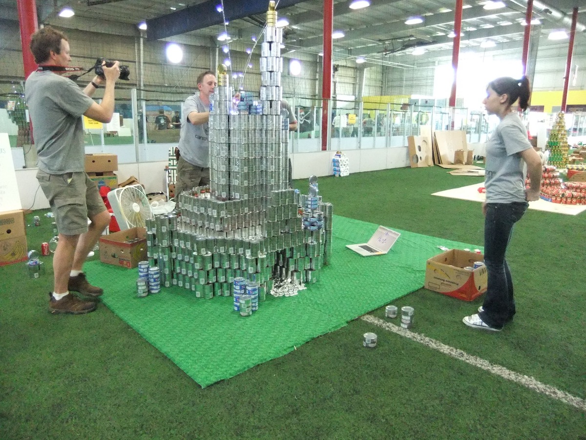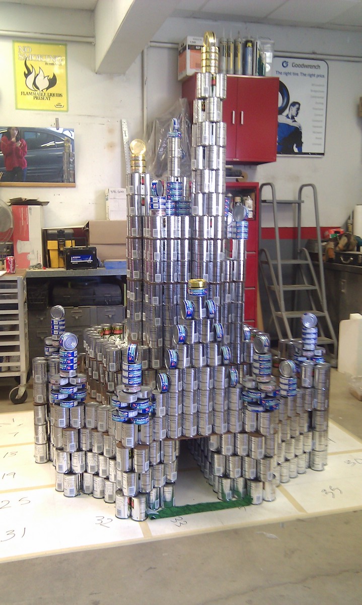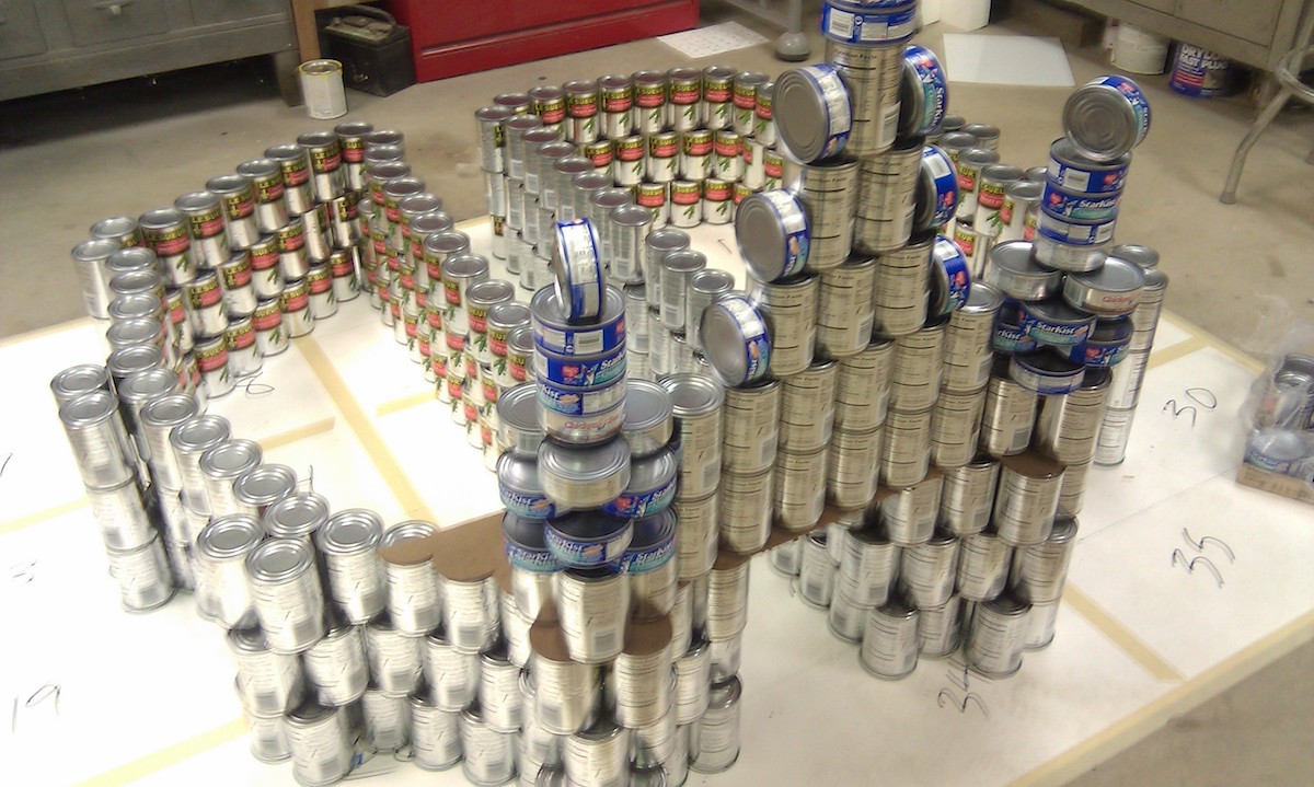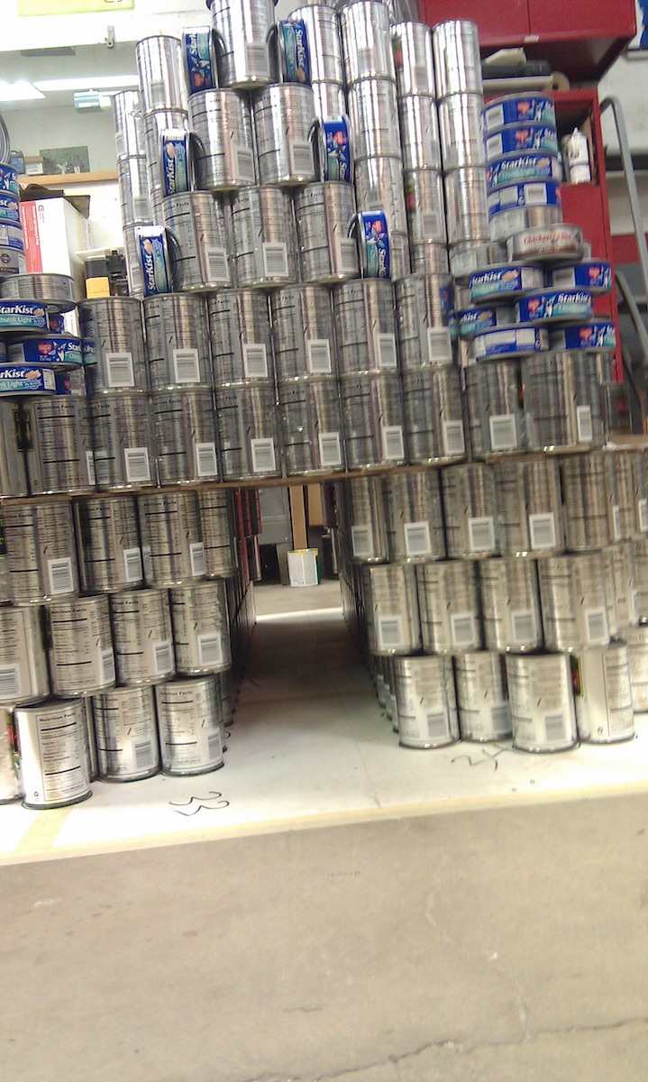 To get ready for the event, we took down the entire structure and packed the cans back into their boxes.