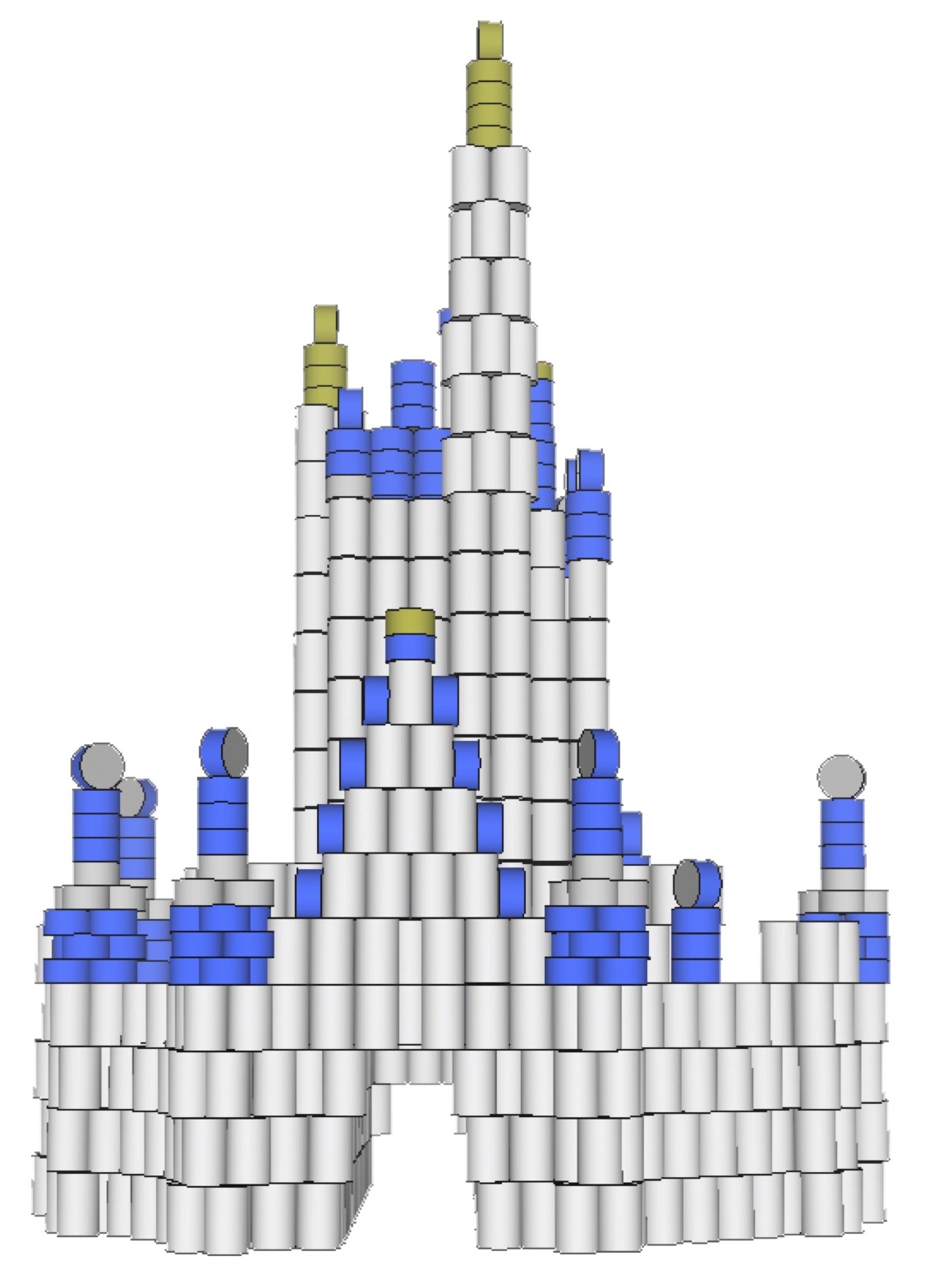 We designed our castle in Sketchup to use normal sized cans for the walls and tuna cans for the turrets.