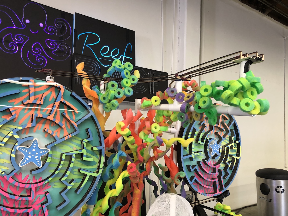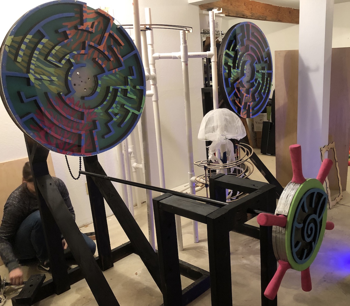 a steering wheel in front of the maze. Two mazes sat side-by-side to
