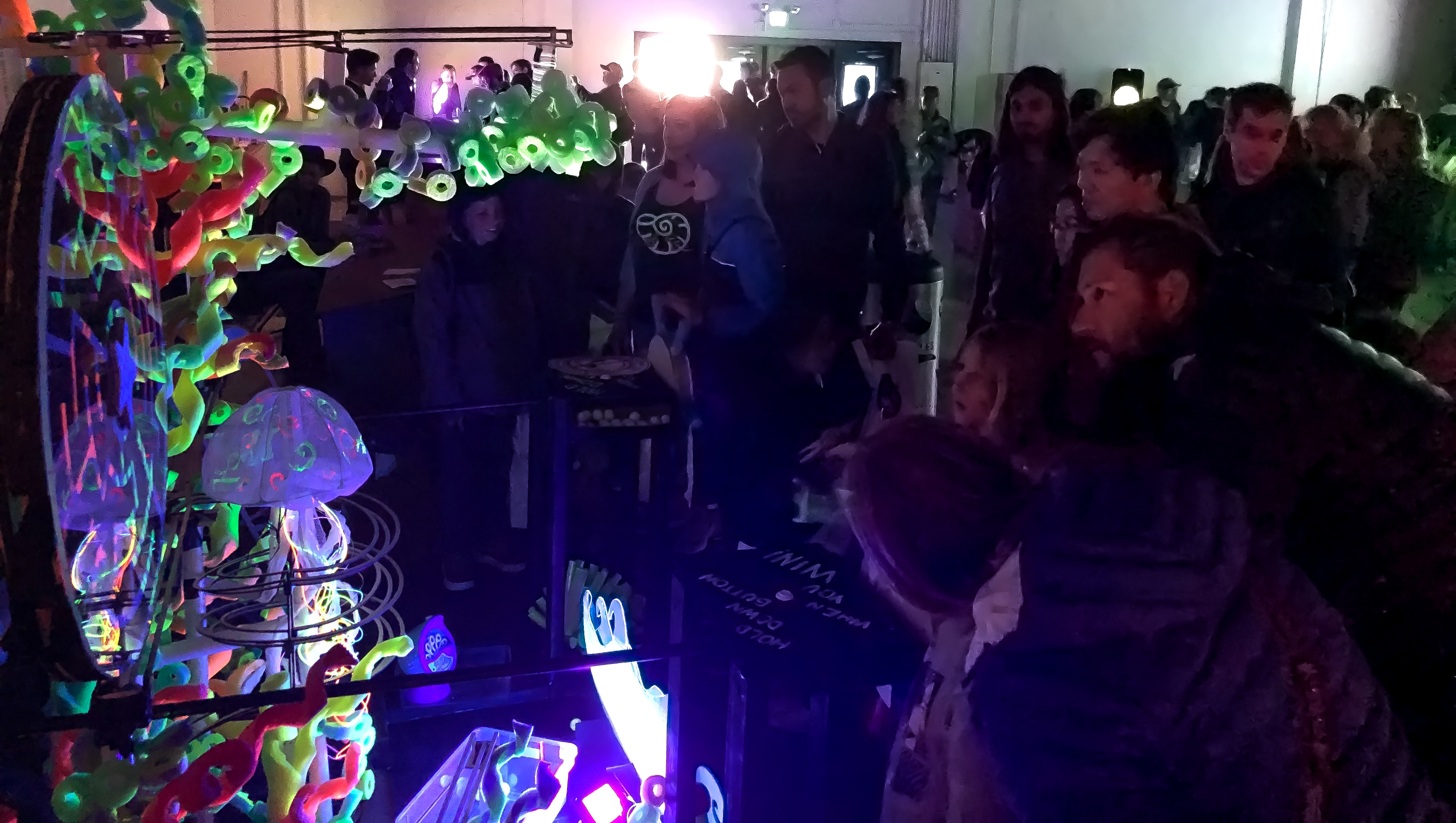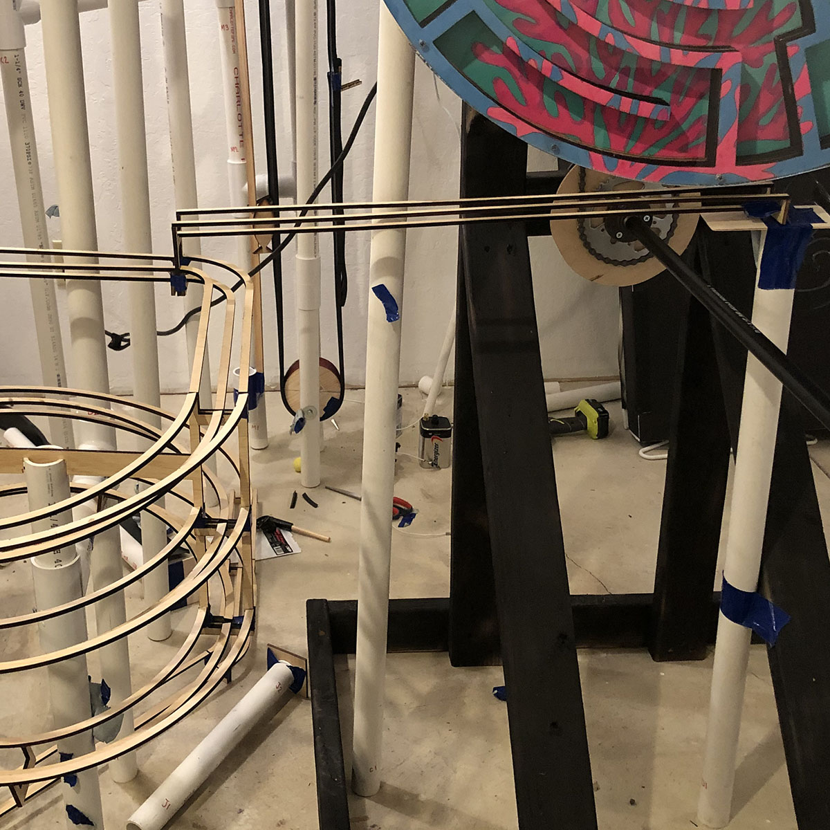 The game would start with a small wooden ball running along a track and dropping into the top of a round