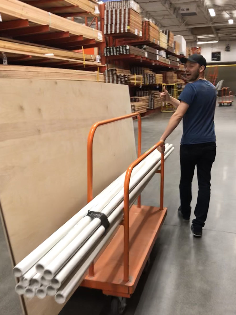 We went to Home Depot to pick up PVC and wood boards and brought them